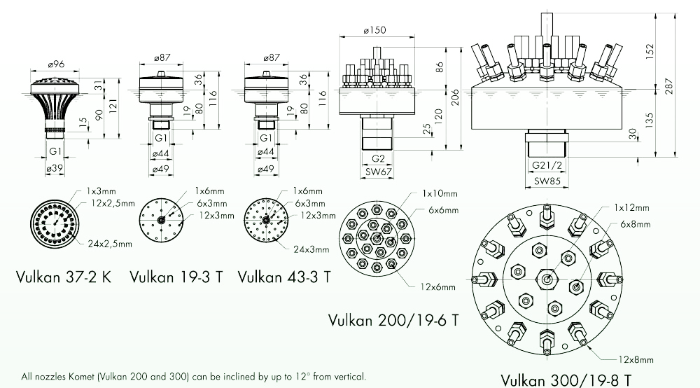 Насадки серии Vulkan создают водную картину, где множество струй взлетают вверх и падают с разных уровней. Эти модели особенно удобны в эксплуатации, так как их чистка не требует больших усилий. С помощью насадок этой линейки можно создать как небольшой фонтан, так и внушительное водное сооружение.
