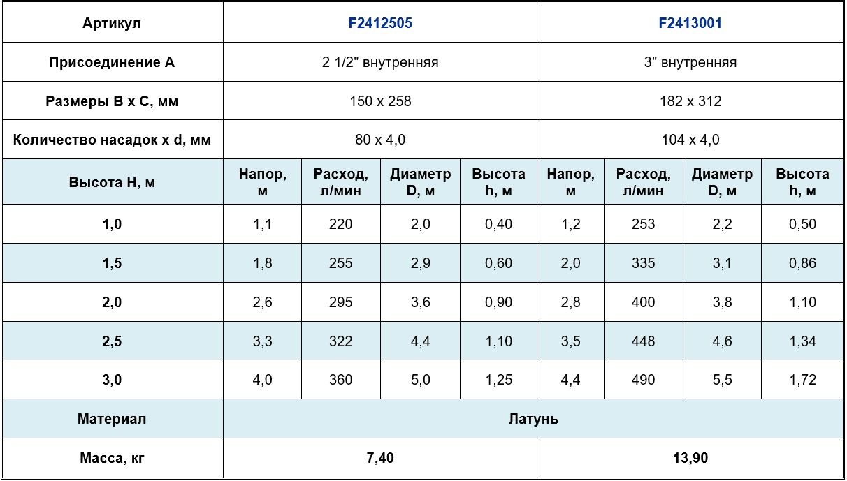 Высота струи max, м