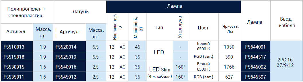 Подводный светильник PAR 56 lightfixture, 160°, 12V.AC, 35W, LED Slim, холодный свет